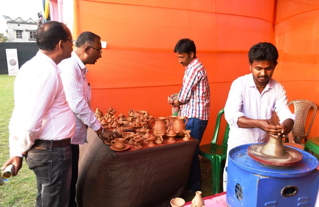 Uttar Dinajpur Festival was organised at Raiganj showcasing the rich art and craft of North Bengal. The fesitvla was inaugurated by the Sabhadhipati of Uttar Dinajpur, Kabita Barman, Additional Distrrict Magistrate (Development), Shri Manas Mandal, GM DIC, Chairman Raiganj Municipality, Headmaster-Sudarshanpur Dwarika Prasad Vidyachakra and master artists inaugurated the festival. There were 20 stalls in the festivals where 43 craft artists participated. Folk performances were organised where 114 artists participated. Local cultural groups also performed in the event. There were handicraft stalls of Wooden Mask, Basketry, Terracotta, Shola craft, Sitalpati, Bamboo Mask, Dhokra, Rabha, Kantha and Patachitra. Each stall had an artist demonstrating the process of making the handicraft which attracted a lot of visitors who were curious and wanted to learn about the making of the handicrafts. Mukha dance, Raibenshe, Baul, Gambhira, Rabha song and dance, Bhawaiya music was showcased in the festival.